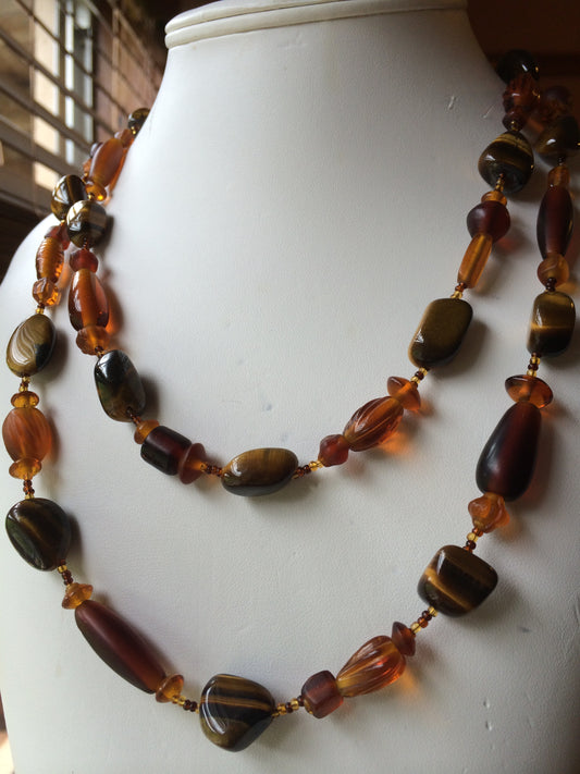 Necklace, Tiger's Eye nuggets with Antique Amber Glass